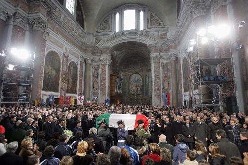 意大利7日在羅馬市中心為遭美軍槍擊身亡的意大利特工卡利帕里舉行國葬。意大利總統(tǒng)錢皮、總理貝盧斯科尼以及數(shù)千名民眾出席了國葬儀式。