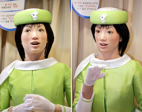 咨詢臺(tái)機(jī)器人職員是由日本可可洛公司和先進(jìn)傳媒公司研制的,外表似二十多歲的日本女子,能聽(tīng)懂四萬(wàn)多個(gè)中文、英文、日文和韓文語(yǔ)句。
