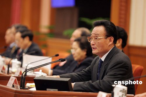 圖:吳邦國(guó)與人大青海代表一起審議工作報(bào)告