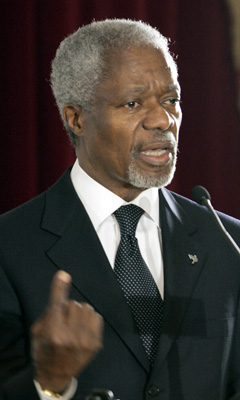 11日,在馬德里列車(chē)爆炸這一恐怖襲擊事件發(fā)生一周年之際,聯(lián)合國(guó)秘書(shū)長(zhǎng)發(fā)表了演說(shuō),提議締結(jié)一個(gè)全面的條約,禁止恐怖主義、譴責(zé)以平民為目標(biāo)的襲擊,指出任何政治冤屈都不能成為殺害無(wú)辜者的合理辯解。他強(qiáng)調(diào)世界各國(guó)應(yīng)加強(qiáng)合作,為消滅恐怖主義進(jìn)行堅(jiān)決斗爭(zhēng)。
