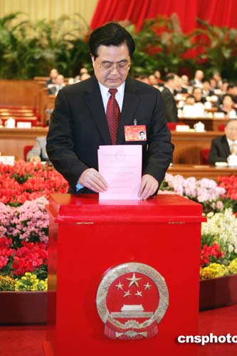 中新社北京三月十三日電 題:胡錦濤當(dāng)選國家軍委主席側(cè)記