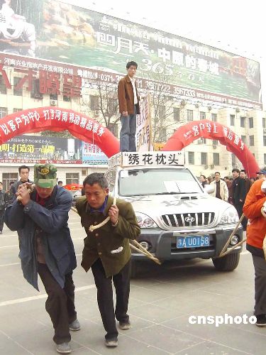 | 3月15日,鄭州一市民將其剛剛買了一年的“問題”車?yán)搅嘶顒蝇F(xiàn)場。今天,河南開展“3.15”國際消費(fèi)者權(quán)益日宣傳活動,以“健康、維權(quán)”為主題的現(xiàn)場咨詢、投訴受理等形式的維護(hù)消費(fèi)者權(quán)益的活動受到了廣大市民的歡迎。作者:白源