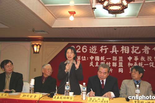 中新社臺(tái)北三月二十日電(記者 趙江濤 董會(huì)峰)中國統(tǒng)一聯(lián)盟、中華教授協(xié)會(huì)、民主團(tuán)結(jié)聯(lián)盟、和平統(tǒng)一促進(jìn)會(huì)、新同盟會(huì)今天在此間舉行“三二六游行真相聯(lián)合記者會(huì)”。與會(huì)人士指出,以所謂“反‘反分裂法’”、“反并吞”為由發(fā)動(dòng)“三二六”游行,因果倒置、不負(fù)責(zé)任,對臺(tái)灣民眾沒好處,也無益于兩岸關(guān)系改善。