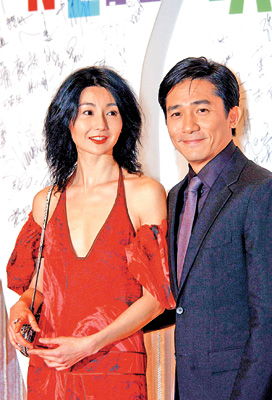 梁朝偉與張曼玉一同抵達現(xiàn)場,手拖手盡顯溫馨甜蜜;身穿紅色低胸露背晚裝的張曼玉甫到場,二百位傳媒即蜂擁上前拍照,及后周潤發(fā)到場同樣引起哄動。