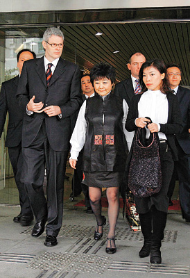 在歷時10分鐘的提訊過程中,“見慣大場面”的龔如心表現(xiàn)冷靜。昨日顯得容光煥發(fā),除了一頭整齊短發(fā)外,更以黑色唐裝配上一條黑色超短裙,及一對黑色長絲襪及高跟鞋,唇上更涂上桃紅色口紅。在提訊后約10分鐘,龔如心便付妥保釋金,在大批保鏢的護送下,面帶笑容離開東區(qū)法院。