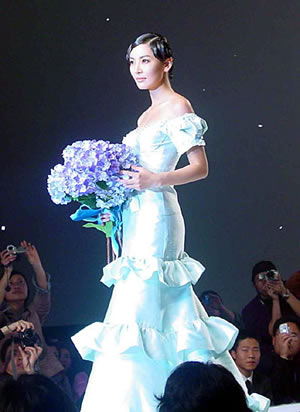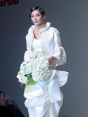 中新網(wǎng)3月24日電 據(jù)新聞晚報報道,昨天(23日)下午,在世貿(mào)商城的韓國時裝紡織博覽會上,韓國明星金素妍、鄭俊鎬身穿韓國頂級時裝大師AndreKim(安德烈·金)設(shè)計的最新服裝舉行了一場別開生面的婚紗秀,贏得了中國影迷的熱烈歡呼。下午三點(diǎn),婚紗秀現(xiàn)場正式開放,爭相涌進(jìn)的觀眾讓表演現(xiàn)場一時陷入癱瘓。主辦方不得不現(xiàn)場趕人,沒有邀請函的觀眾一律“清理”。當(dāng)金素妍和鄭俊鎬雙雙出現(xiàn)在舞臺上時,歡呼聲伴隨著閃光燈爆發(fā)出來,出現(xiàn)了仿佛是搖滾樂演唱會的情景。特別是當(dāng)鄭俊鎬輕吻金素妍前額時,一些女影迷當(dāng)場流出了熱淚。