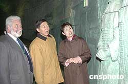 日本愛知世博會二十五日正式開展當(dāng)天上午,國際展覽局主席吳建民(中)、秘書長洛塞泰斯(左)在本次世博會中國政府代表高燕(右)的陪同下參觀中國館。作者:王健