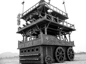 此外,記者了解到,“襄陽(yáng)大戰(zhàn)”整個(gè)古戰(zhàn)場(chǎng)周圍用藍(lán)布圍起作為背景,而視效背景則要靠電腦制作拷貝粘貼上去;一輛“大戰(zhàn)車”要“制造”5輛戰(zhàn)車,幾門火炮要有二十幾門火炮齊發(fā)的效果,都要在電腦里“造就”;襄陽(yáng)城被蒙古火炮炸出大缺口,襄陽(yáng)城頭火光烈焰的場(chǎng)景,則要另外制作出鏡頭。其中,把500名群眾演員通過電腦特效復(fù)制十萬大軍,與以往的真人戰(zhàn)爭(zhēng)、武打大場(chǎng)面相比,是一個(gè)最大的不同。張紀(jì)中對(duì)記者表示,在整個(gè)直播中并不會(huì)出現(xiàn)過多的所謂“大場(chǎng)面”片段,因?yàn)閯≈写蟛糠帧按髨?chǎng)面”的描寫是要通過后期電腦特效制作才能展現(xiàn)出來。