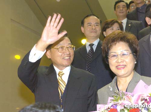 中國(guó)國(guó)民黨副主席江丙坤率領(lǐng)的國(guó)民黨高層大陸參訪團(tuán)一行三十四人,二十八日下午飛抵廣州國(guó)際白云機(jī)場(chǎng),開(kāi)始對(duì)大陸進(jìn)行參觀訪問(wèn)。作者:羅仰明