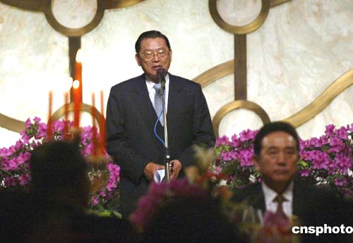 中共中央臺(tái)辦主任陳云林在北京宴請(qǐng)前來(lái)北京參訪(fǎng)的中國(guó)國(guó)民黨副主席江丙坤一行。江丙坤講話(huà)表示希望此行成為兩岸關(guān)系的“破冰之旅”。作者:廖文靜