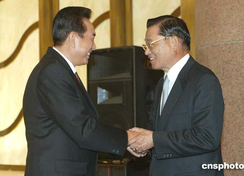 陳云林今晚和中共中央臺辦、商務(wù)部、農(nóng)業(yè)部、民航總局、質(zhì)檢總局、海關(guān)總署的同仁與中國國民黨訪問團就加強兩岸經(jīng)貿(mào)合作、促進兩岸共同發(fā)展所關(guān)系到的兩岸重大經(jīng)貿(mào)合作,進行工作性會談。在會談開始階段的媒體開放時間里,陳云林做以上表述。