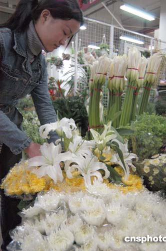 圖:清明節(jié)前北京鮮花市場(chǎng)需求激增