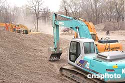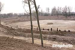 | 中國國家環(huán)?偩秩涨奥暶,圓明園湖底鋪設(shè)防滲膜工程至今未進(jìn)行建設(shè)項(xiàng)目環(huán)境影響評價,應(yīng)該立即停止建設(shè),充分征詢社會各界的意見,依法補(bǔ)辦環(huán)境影響評價審批手續(xù)。三月三十一日,投資1億元,持續(xù)數(shù)個月的2000余畝圓明園湖底(鋪塑料)防滲水工程開始停工。圖為圓明園福海西側(cè)一角藏龍臥虎,大型機(jī)械余熱方盡。但是,圓明園三園(包括長春園、綺春園),約2000余畝湖底防滲工程已基本鋪設(shè)完成了防滲水塑料,令專家和百姓失望。作者:鄒憲