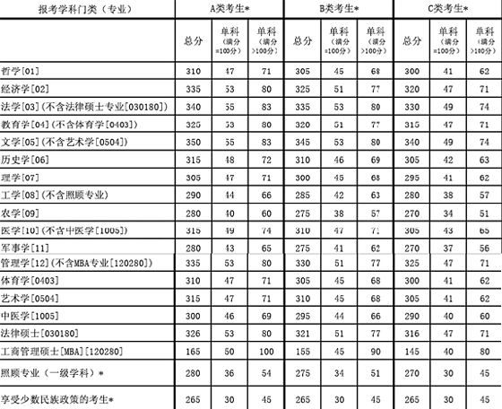 三、體現(xiàn)全面考核、綜合評定的原則。確定進入復(fù)試最低分數(shù)線,對考生不但有總分的要求,而且有單科的成績要求,以體現(xiàn)對考生知識結(jié)構(gòu)的全面考察。