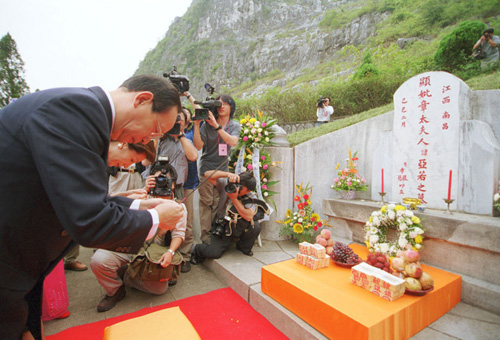 蔣孝嚴(yán)此前也數(shù)度來桂林祭母。最近一次是去年七月二十七日,攜夫人黃美倫來到長眠于桂林市郊區(qū)馬鞍山西側(cè)鳳凰嶺下母親章亞若墓前祭奠母親,告慰九泉之下的母親已了卻認(rèn)祖歸宗的心愿。據(jù)悉,此次蔣孝嚴(yán)大陸之行,在桂林只作短暫停留。四日掃墓結(jié)束后,當(dāng)天下午便離開桂林,飛西安出席當(dāng)?shù)匾粋經(jīng)貿(mào)活動。有消息稱,若時間允許,蔣孝嚴(yán)也可能順道訪國民黨主席連戰(zhàn)的祖母墳?zāi),為連戰(zhàn)的西安之行鋪路。之后會再飛返浙江溪口蔣氏故居祭祖,到毛太夫人墳前掃墓。