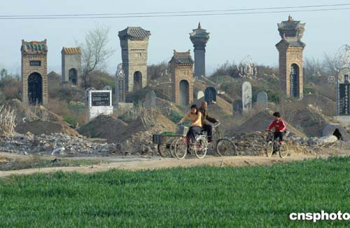 圖:關(guān)中地區(qū)土葬回潮 墓碑高過(guò)秦陵碑亭