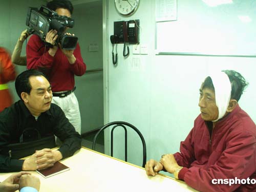 廣西北海市臺辦主任肖先業(yè)五日上午接見獲救的臺灣事故漁船船長林永清。四月四日上午,一艘臺灣籍漁船在北部灣潿洲島以西距北海潿洲島約九十海里處的海域起火,大陸有關方面在接到出事漁船發(fā)出求助信號后,立即派出“南海救一九九”船、“南海救二○九”船及一架直升飛機全速趕赴現(xiàn)場救援。出事臺灣籍漁船五日抵達北海,船員全部獲救。作者:張慶利