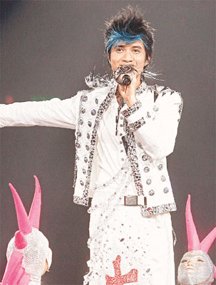 中新網(wǎng)4月7日電 據(jù)香港媒體報(bào)道,昨晚在紅館舉行《勁歌金曲演唱會(huì)Part 2》的古巨基,全場(chǎng)爆滿(mǎn)!演唱會(huì)在八時(shí)三十五分開(kāi)始,由Cookies的成員Kary擔(dān)任表演嘉賓,現(xiàn)場(chǎng)還有周慧敏及另一Cookies成員Theresa前來(lái)捧場(chǎng);幸蝗鏟art 1演唱會(huì)一樣,戴上面罩出場(chǎng)高唱?jiǎng)臜it歌《必殺技》,但基仔唱至最高音部分竟然走音。
