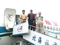 三臺(tái)灣遇險(xiǎn)漁民四月七日上午七點(diǎn)在廣西北海機(jī)場(chǎng)搭乘北海至深圳航班,預(yù)定取道香港返回臺(tái)灣。作者:張慶利