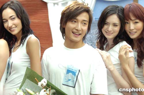 圖:香港紅星方力申與名模展示春夏時(shí)裝