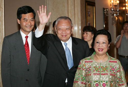 董建華伉儷于昨天晚上七時(shí)半抵達(dá)港島香格里拉酒店夏宮,他向在場(chǎng)的記者善意揮手,但沒有回應(yīng)提問。辭官近一個(gè)月的董建華,身形略為清減,臉色紅潤(rùn),看來身體狀況勝于從前。