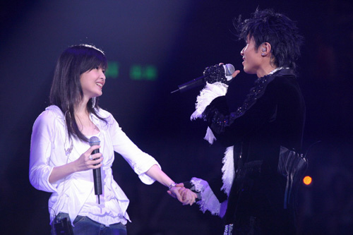 中新網(wǎng)4月8日電 據(jù)香港《大公報》報道,古巨基演唱會前晚于紅館揭幕,當(dāng)晚最難得就是“基仔”請來好友周慧敏(vivain)助陣。vivain最初只是座上客,沒想到“基仔”借助觀眾的威力把她拉出場,二人合唱一曲《流言》,贏盡觀眾掌聲。