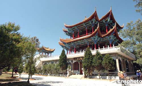 | 在鄭和故里云南省晉寧縣的鄭和公園里建有一座“三寶樓”,其形似一首巨型鄭和寶船,一層船頭翹首向前,二、三層琉璃瓦制頂,雕龍畫鳳,四周漢白玉欄上的浮雕是根據(jù)鄭和下西洋帶回的珍禽異獸及出國時帶去的瓷器、絲綢等資料精心設(shè)計(jì)的。樓上匾額上書寫著“海上巨人”四個金字,記者看到施工人員正在緊張施工。據(jù)當(dāng)?shù)毓賳T介紹,為迎接鄭和下西洋六百周年,晉寧縣政府投資二千三百萬元對鄭和公園進(jìn)行改擴(kuò)建。作者:蔣振江