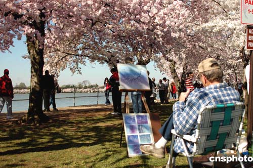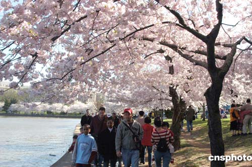 圖:華盛頓櫻花綻放 游人爭(zhēng)相觀賞