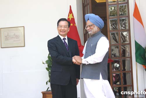 圖:溫家寶與印度總理辛格舉行會(huì)談