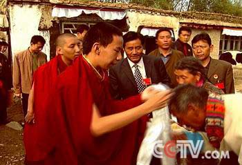 這是2004年9月班禪來到日喀則郊區(qū)走訪農(nóng)戶時的情景?吹讲貐^(qū)人民的生活水平不斷提高,目睹著西藏一年年在發(fā)展在變化,身為藏傳佛教領(lǐng)袖的第十一世班禪心里格外高興。