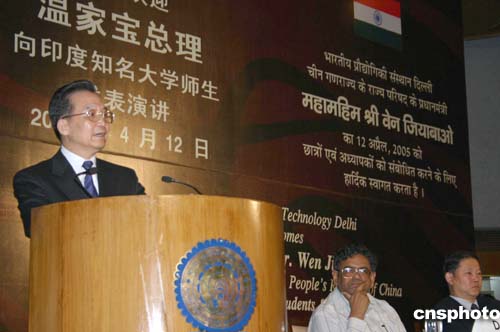 中新社新德里四月十二日電(記者齊彬)中國國務(wù)院總理溫家寶今天來到印度德里理工大學(xué),向近千名印度知名大學(xué)的師生發(fā)表題為《攜手并進(jìn) 共創(chuàng)未來》的演講,并回答了學(xué)生們的提問。