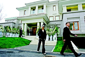 陳逸飛的靈堂就設(shè)置在他剛裝修完工的別墅里。陳逸飛的別墅是一幢歐美風格的建筑。乳黃色的墻面和紅色的瓦,顯得雍容華貴。他在2002年花費了800萬左右買下了這所住宅,去年年底裝修完畢。