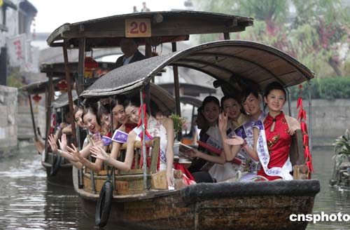 二零零五年國際旅游小姐中國區(qū)總決賽的選手,四月十七日游覽千年古鎮(zhèn)西塘。春光明媚,古鎮(zhèn)美女,相映生輝。作者:毛建軍