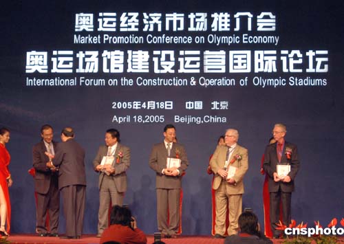 “奧運(yùn)場館建設(shè)運(yùn)營國際論壇”四月十八日在北京飯店隆重舉行,北京市副市長張茅在開幕式上開通“奧運(yùn)經(jīng)濟(jì)網(wǎng)站”。這是繼二00四年北京“奧運(yùn)經(jīng)濟(jì)市場推介會”成功舉辦之后的又一次大型奧運(yùn)商機(jī)推介活動。作者:徐曦弋