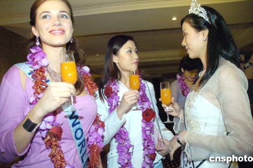 由鳳凰衛(wèi)視組織的“鳳凰有約——情系印度尼西亞送愛心”赴印度尼西亞親善訪問團(tuán),4月17至20日在印度尼西亞展開災(zāi)區(qū)親善探訪活動(dòng)。圖為2004年世界小姐Miss Maria Garcia Mantilla (左)、2004年中華小姐李詩(shī)琪(中)與印度尼西亞小姐一起為災(zāi)區(qū)送愛心。作者:洪少葵