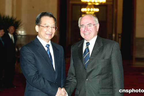 會談后,兩國官員簽署了關于承認中國完全市場經濟地位和啟動中澳自由貿易協(xié)定談判的諒解備忘錄,溫家寶和霍華德出席了簽字儀式。(完)