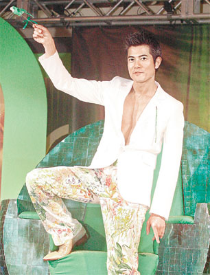 中新網(wǎng)4月19日電 郭富城將于下月舉行演唱會,昨日大會斥資八十萬舉行記者會,由于演唱會以“青鳥”作主題,出席嘉賓、歌迷均以綠色服飾示人,而城城則穿白西裝真空露點(diǎn),坐在玻璃球上出場。
