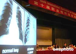 四月十九日,在第十屆職業(yè)性呼吸系統(tǒng)疾病國際會(huì)議上,展示患者胸腔透視。目前,中國有毒有害企業(yè)超過一千六百萬家,受到職業(yè)危害的人數(shù)超過二億,其中塵肺病占百分之八十。職業(yè)病已經(jīng)成為中國重大公共衛(wèi)生和社會(huì)問題。作者:韓藝冰