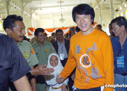 國際巨星成龍及曾志偉等一行,近日在印度尼西亞阿齊省災區(qū)和棉蘭市探訪當?shù)貫拿,成龍所到之處歡呼聲不斷。作者:洪少葵