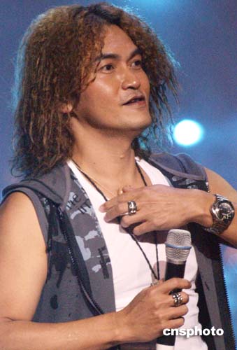 來自臺灣的“搖滾”歌手迪克牛仔,在福建石獅市舉行的《卡賓?卡賓!》時裝設計作品戶外匯演上演唱助興。第八屆海峽兩岸紡織服裝博覽會目前正在福建石獅市舉行。作者:錢興強