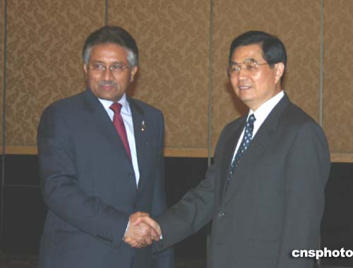 圖:胡錦濤會見巴基斯坦總統(tǒng)穆沙拉夫