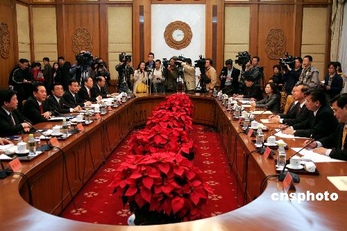 中共中央臺灣工作辦公室主任陳云林會見親民黨秘書長秦金生。作者:毛建軍