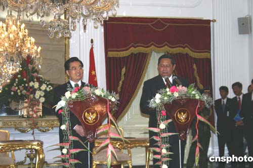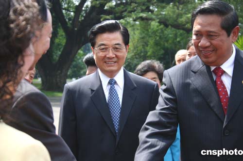 中新網(wǎng)雅加達(dá)四月二十五日電(記者李靜)中國國家主席胡錦濤二十五日在雅加達(dá)與印尼總統(tǒng)蘇希洛舉行會談。雙方共同簽署《聯(lián)合宣言》,宣布建立中國與印尼戰(zhàn)略伙伴關(guān)系。
