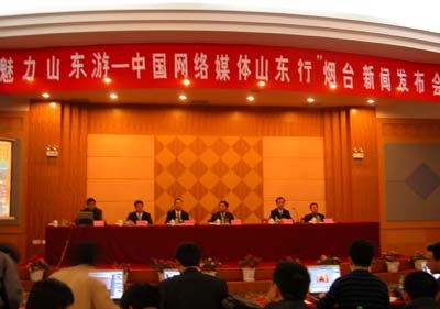 25日,“魅力山東游——中國(guó)網(wǎng)絡(luò)媒體山東行”采訪團(tuán)一行深入煙臺(tái)蓬萊景區(qū)、南山景區(qū)采訪。當(dāng)天下午,在新聞發(fā)布會(huì)上,煙臺(tái)市旅游局局長(zhǎng)郝鳳利向網(wǎng)絡(luò)媒體記者介紹了煙臺(tái)旅游概況。
