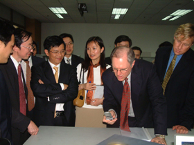 長虹公司董事長趙勇及其他領(lǐng)導(dǎo)陪同客人們參觀了長虹國家級技術(shù)中心有關(guān)實驗室,來賓們對長虹新近研發(fā)的產(chǎn)品產(chǎn)生濃厚的興趣,一次又一次地停下來觀看、詢問和試操作。