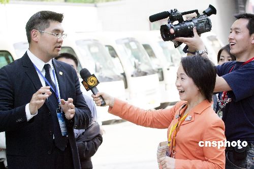 連戰(zhàn)的長(zhǎng)子連勝文四月二十七日在南京參觀中國(guó)近代史遺址博物館時(shí)接受記者采訪。作者:毛建軍