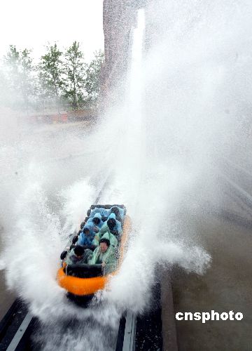 北京石景山游樂園在“五一”長假前推出驚險大型主題項目--瓊斯探險,此項目水道長達(dá)五百米,提升高度二十米,最大滑行時速達(dá)六十五公里,兼有峽谷漂流和急流勇進的雙重感覺。在游船沿軌道下滑的過程中,如同置身于高山峽谷,可感受到飛流直下的驚險境界。作者:李剛