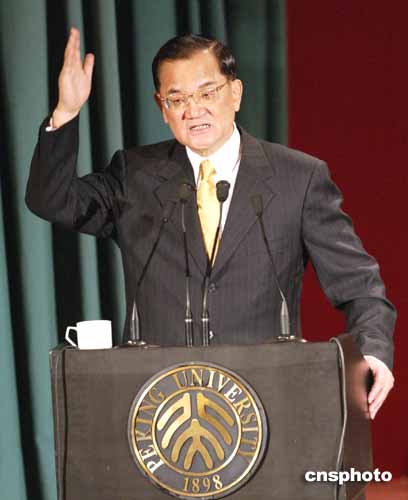 據(jù)了解,此次連戰(zhàn)“演講會”可謂一票難求,大約只有四百名幸運(yùn)兒獲準(zhǔn)進(jìn)場。許多院系特為沒有現(xiàn)場票的學(xué)生放假半日,設(shè)有電視直播的北大圖書館和食堂內(nèi)人員爆滿。