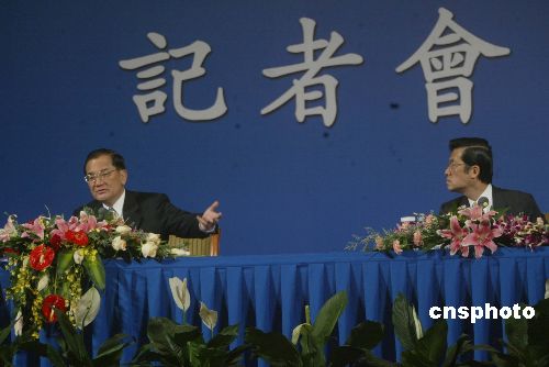 他并宣讀中國國民黨主席連戰(zhàn)與中國共產(chǎn)黨總書記胡錦濤會談新聞公報。