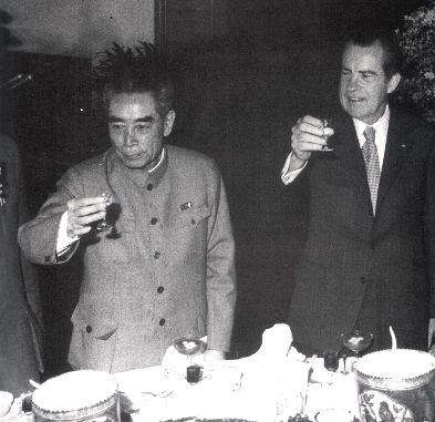 汽車到達(dá)體育館,敏感的日本記者發(fā)現(xiàn)兩人站在一起愉快地聊著,用照相機(jī)攝下了這個鏡頭。第二天,日本三大報《朝日新聞》、《每日新聞》、《讀賣新聞》的頭版顯著位置,圖文并茂地刊載了兩人握手、交談的圖片,有的還加了橫欄標(biāo)題:中美接近。